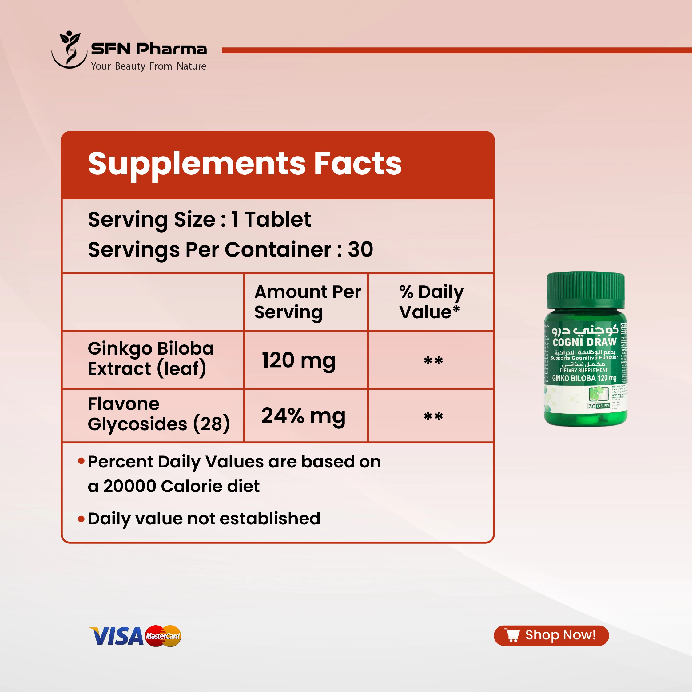 Support your cognitive function with COGNI DRAW, a premium dietary supplement featuring 120 mg of Ginkgo Biloba extract. Ginkgo is the world’s oldest living tree species and has been prized for centuries in traditional medicine. Modern research indicates that its extract can help you feel more focused and alive.